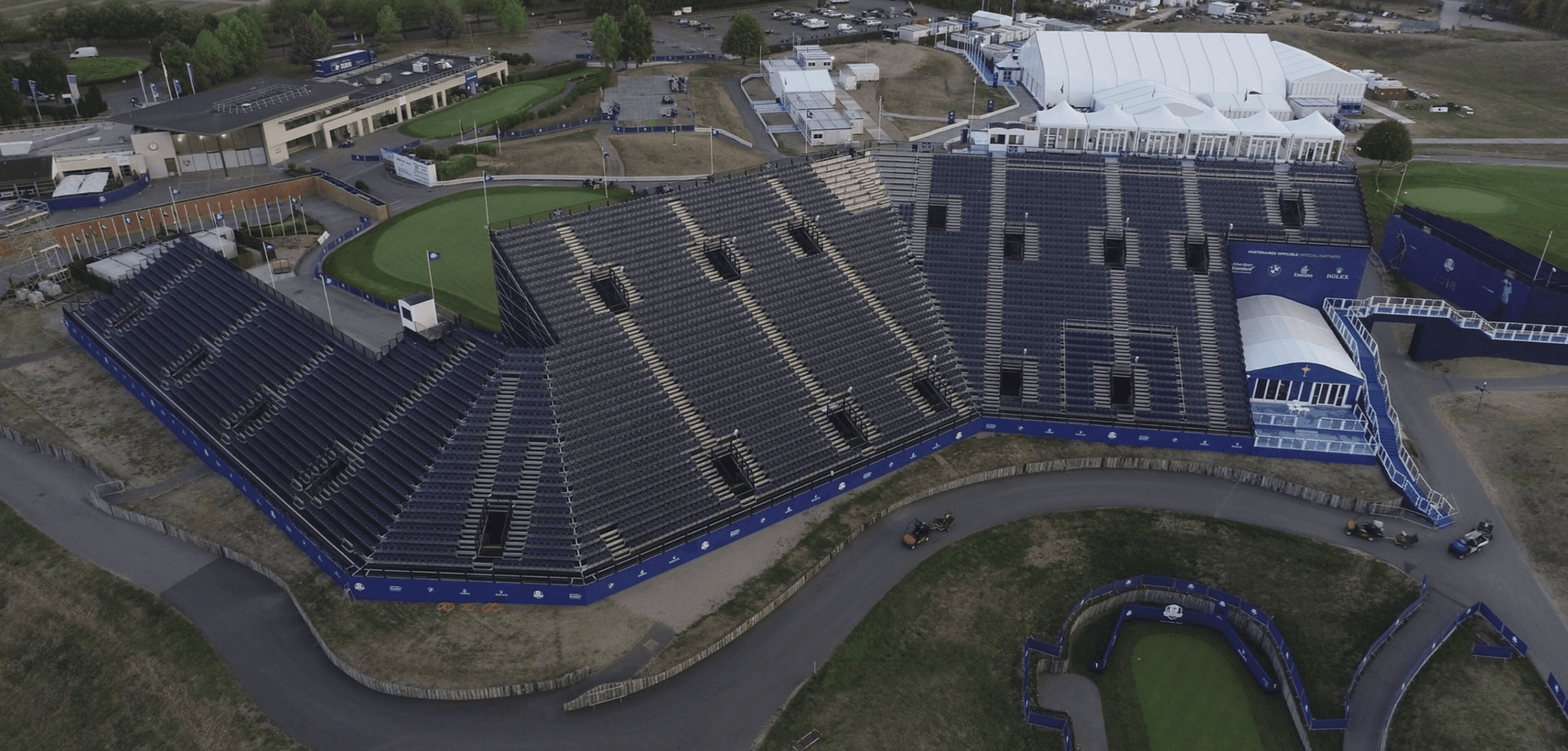 Nolan Associates with GL Events have completed the design for the temporary grandstands and corporate facilities around the Albatros course at Le Golf National near Paris for the 2018 Ryder Cup.